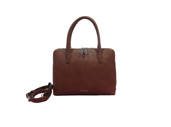 This bag is an elegant and stylish item. It is made from a high-quality Italian leather that exudes luxury both visually and tangibly. The texture of the leather is fine and even, indicating craftsmanship and quality. The bag has two sturdy handles that ensure comfort and ease in carrying. The design is minimalist but functional, with a spacious main compartment that closes with a zip to keep the contents safe. The design of the bag is simple, making it suitable for a variety of occasions.